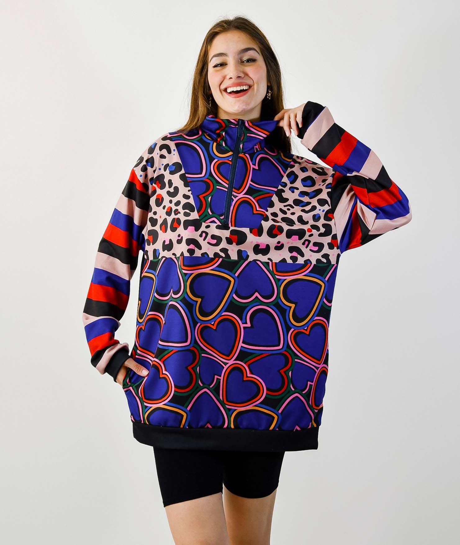 Cuello forrado internamente con cierre, permitiendo un cuello mas holgado y abierto.